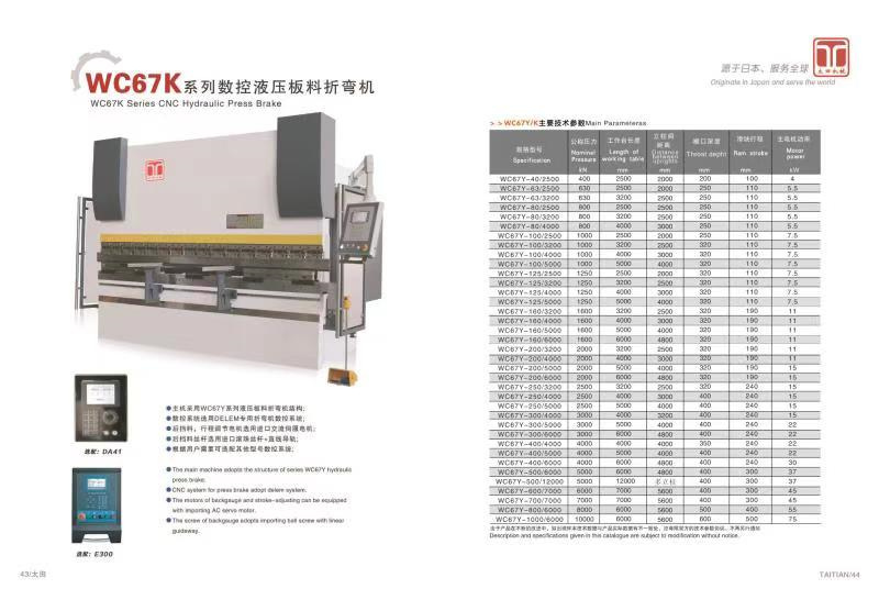 產品介紹:WE67K電液伺服數控折彎機性能特點: ●兩側主油缸同步采用德國進口電液伺服閥和德國 HEIDENHAIN 公司光柵尺構成閉環(huán)控制,反饋***高,滑塊運行準確,從而使折彎精度、滑塊重復定位精度高。 ●采用液壓凸形自動補償系統(tǒng),解決滑塊在折彎過程中的變形對工件質量的影響。補償數量由數控系統(tǒng)自動調整,方便***。 ●采用功能齊全的后擋料機構,可選擇控制多個后擋料軸。后擋料中的功能部件,如導軌、絲杠